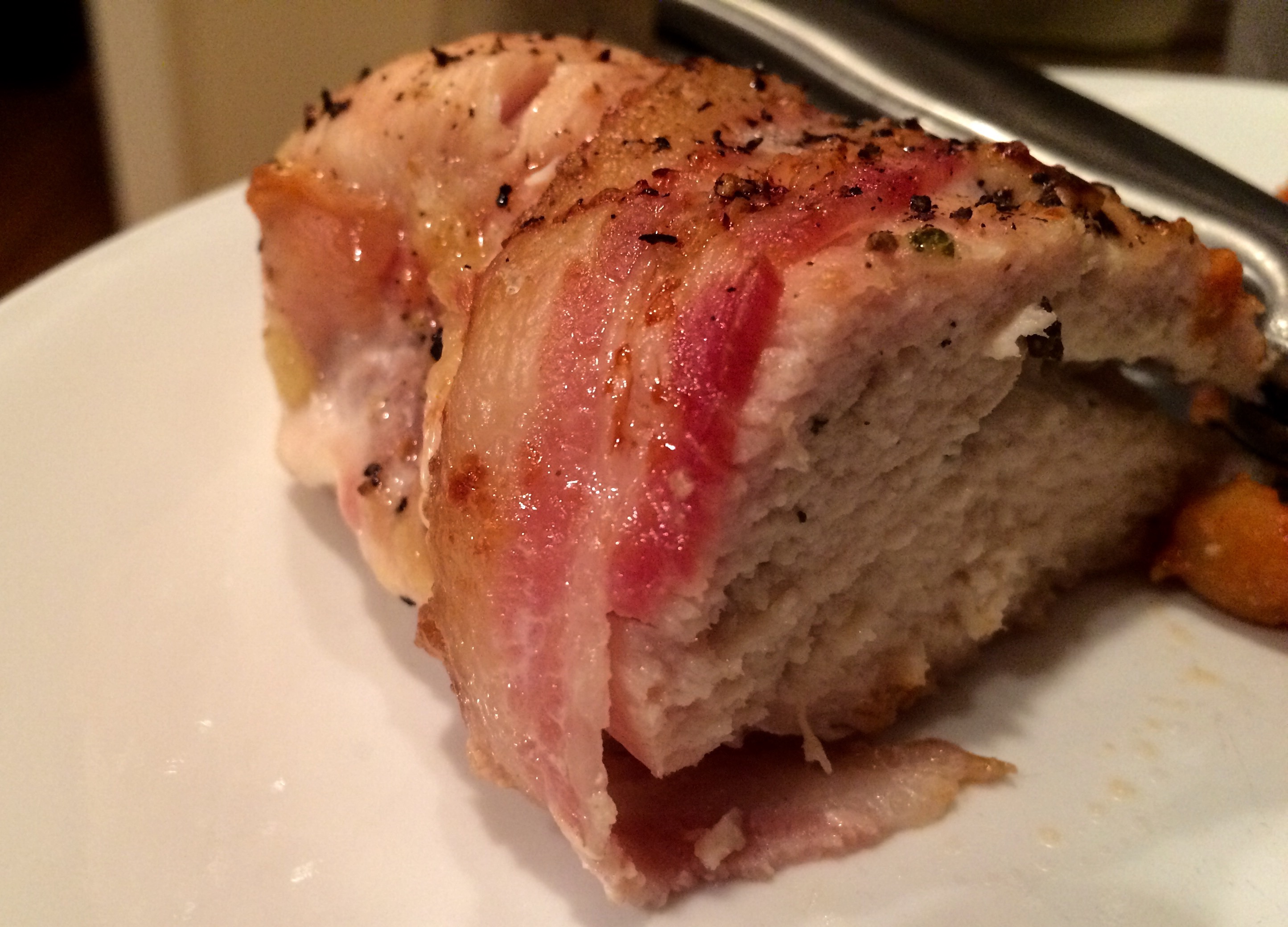 If the bacon has not crisped to your liking, place under broiler for 1 minute. If not crisped, keep chicken under broiler and check every 30 seconds.