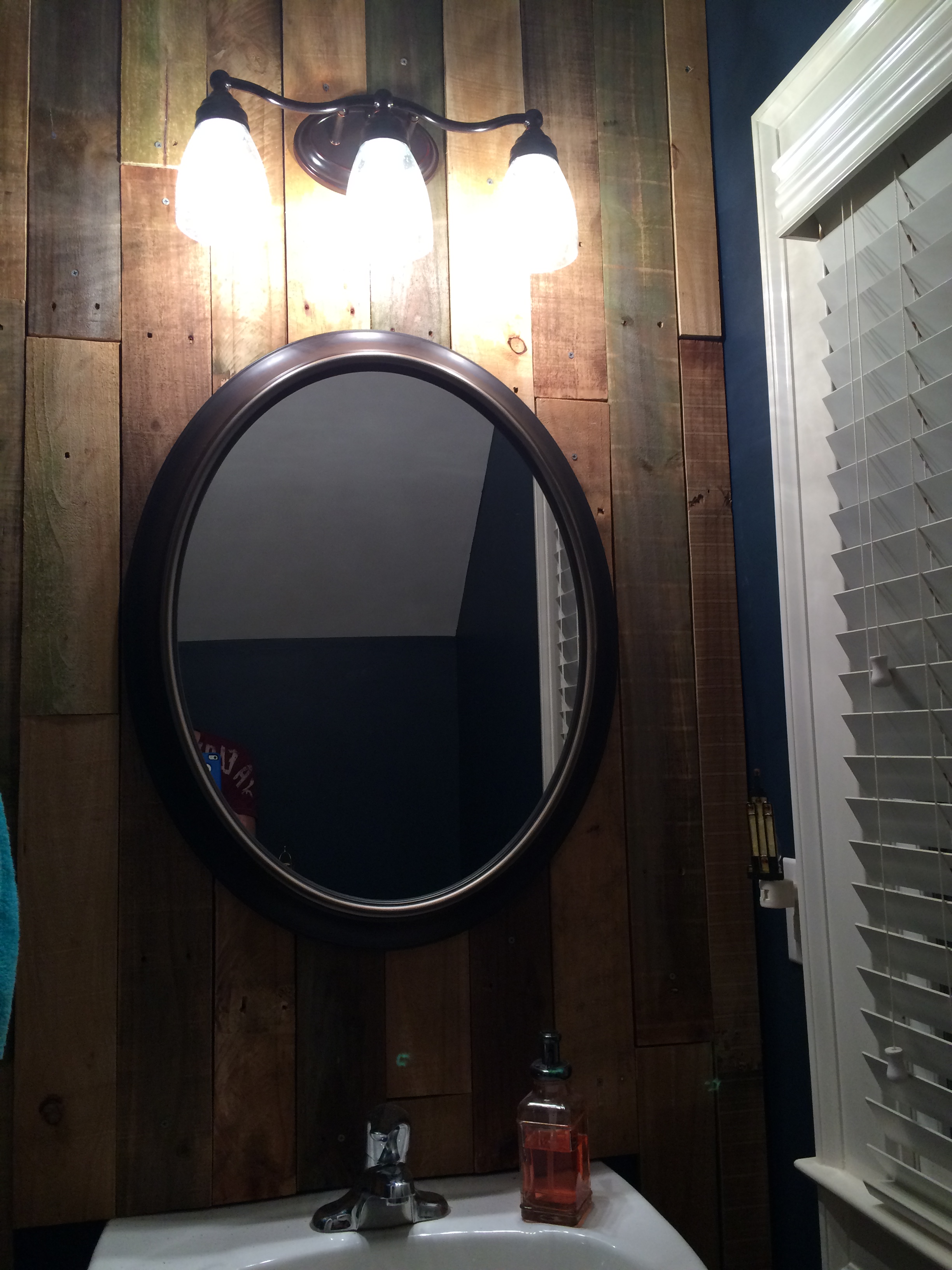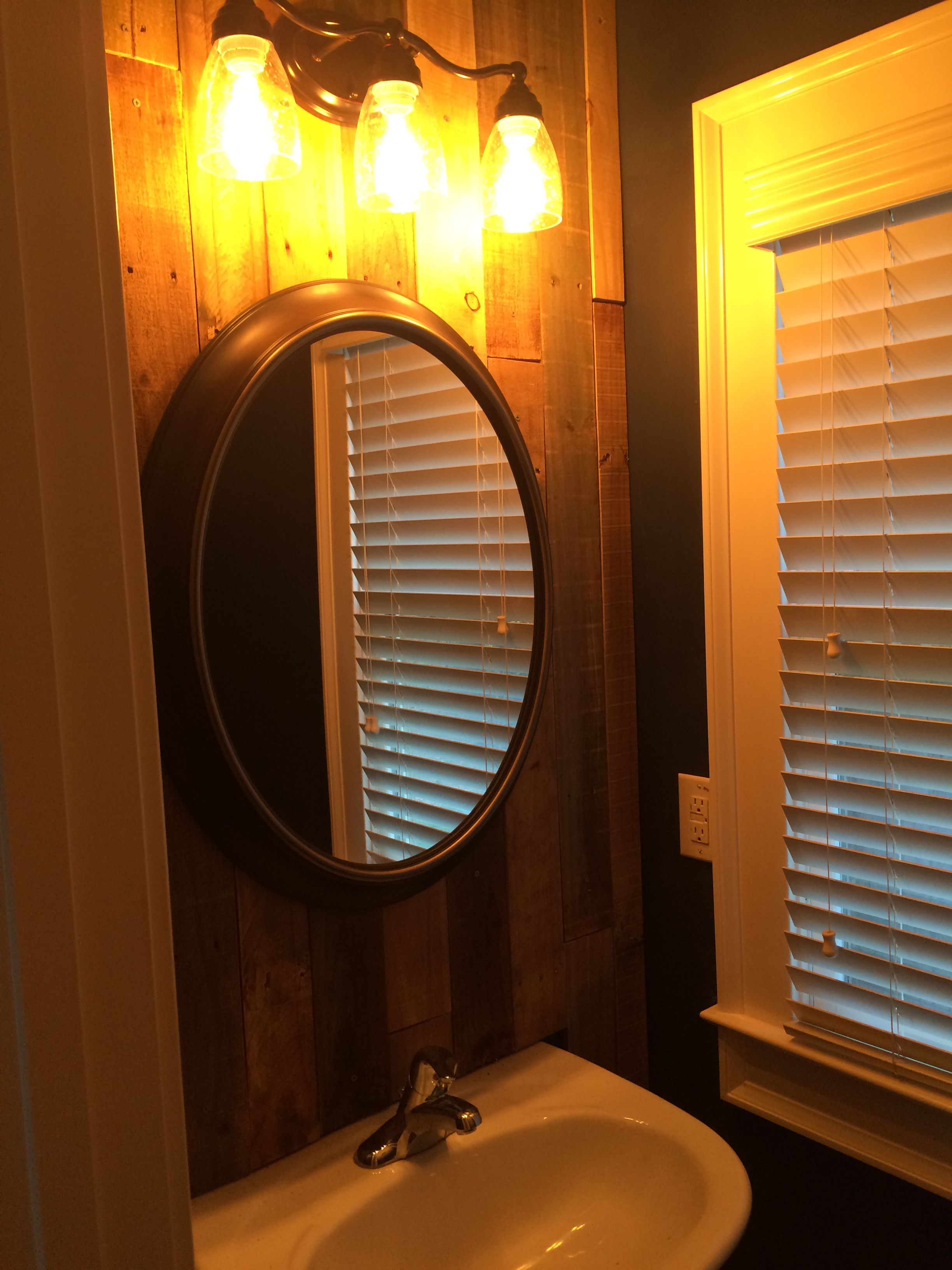 After all was said and done, the bulbs didn’t go with the room. Turns out, they give off quite an orange glow and made the bathroom feel more like a haunted house than something fresh and crisp.