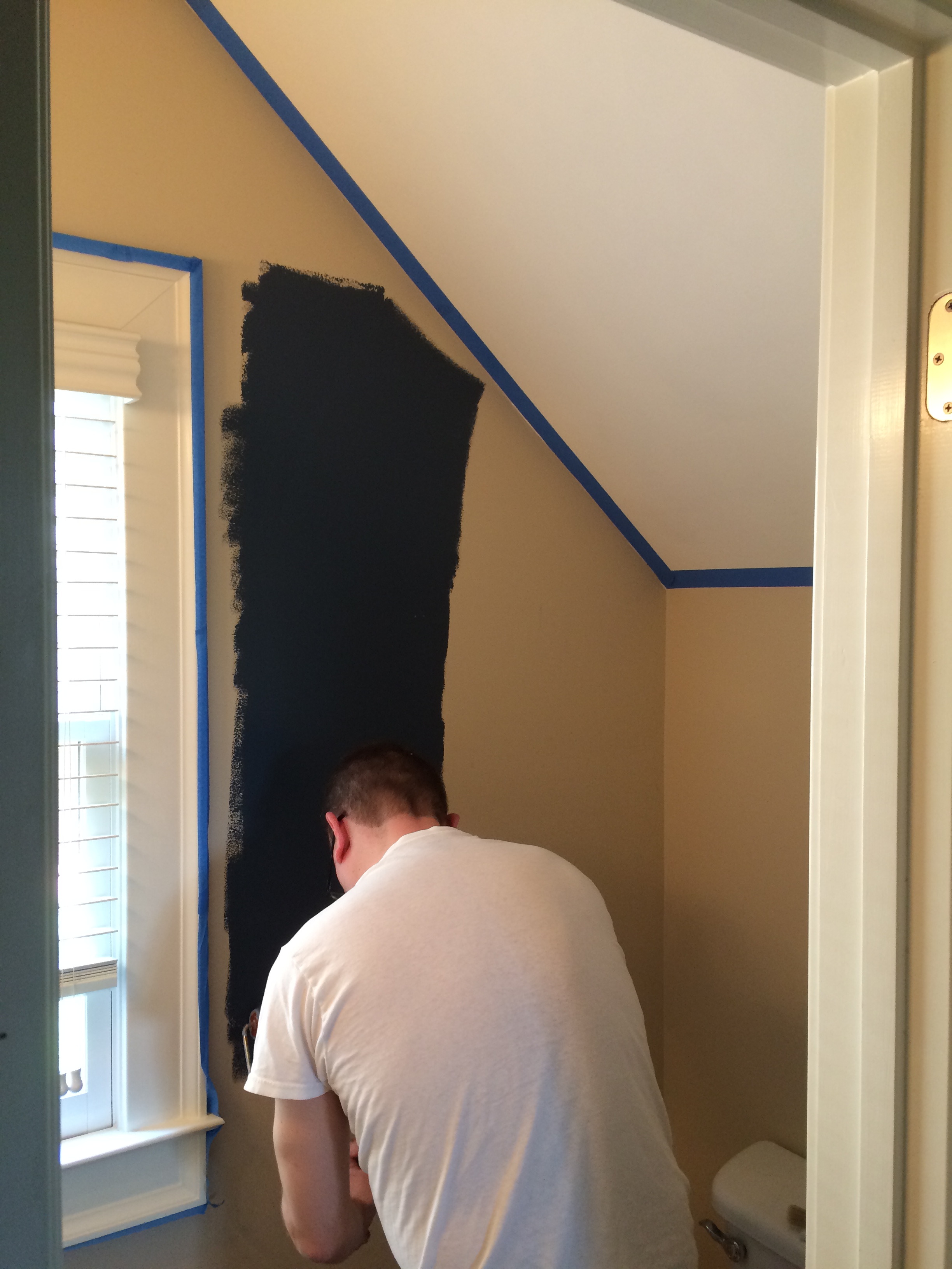 Next, we wanted to do something with the one floor to ceiling wall in the room (since the bathroom is under the stairs).